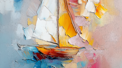 WonderMuralТази тапет илюстрира цветна ветроходна лодка, плаваща по абстрактни вълни, създадени с ярки мазки от боя. Смесицата от нюанси на синьо, жълто и роз...