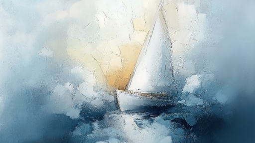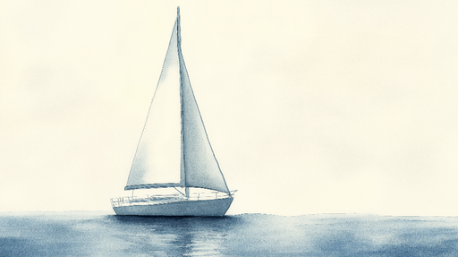 WonderMuralТази тапет изобразява елегантна ветроходна лодка, нарисувана с акварел, плаваща в спокойно море, където нюансите на синьото се сливат. Финният и св...