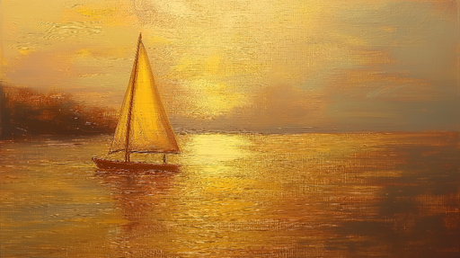 WonderMuralТази тапет илюстрира величествен ветроходен кораб, който бавно се носи по море, деликатно оцветено в злато, под нежните лъчи на залеза. Топлите нюа...