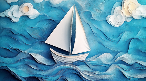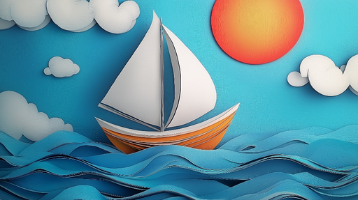 WonderMuralОткрийте нашата завладяваща стенописна тапет, която представя стилизирана ветроходка, плаваща по стилизирани вълни под великолепно синьо небе, укра...