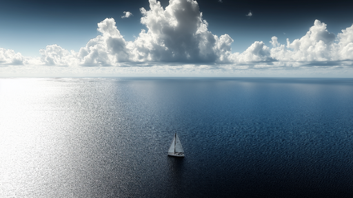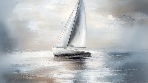 WonderMuralТази тапета предизвиква спокойствието на обширно океанско пространство, където ветроходна лодка се плъзга мирно по спокойни и отразяващи води. Нюан...