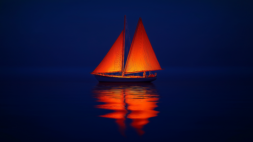 Прегледайте пълни подробностиЗавеса за тапет | Осветена ветроходна лодка на успокояващ нощен фон