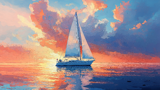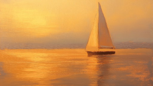 WonderMuralТази тапет предизвиква успокояващата красота на залез над водата, с елегантна платноходка, силуетирана на фона на градиент от топли цветове. Нюанси...