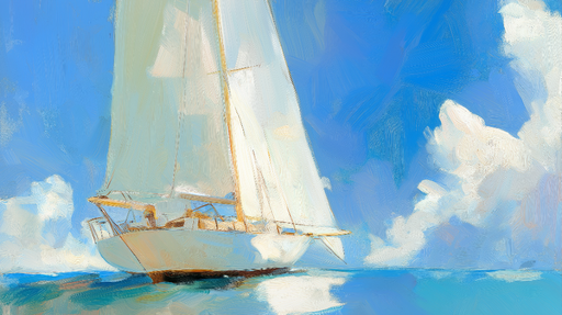 WonderMuralНашата тапет показва великолепна бяла платноходка, плаваща в дълбоки сини води, създавайки спокойна и морска атмосфера. Нюансите на синьото варират...
