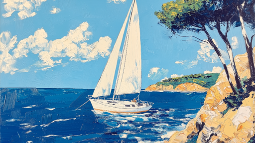 Прегледайте пълни подробностиФототапет платноходка | Елегантни илюстрации на яхта на спокоен фон