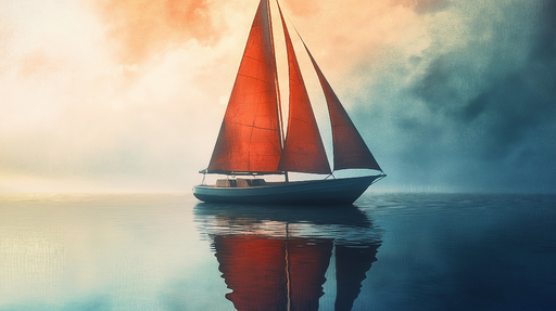 WonderMuralТози завладяващ фототапет показва платноходка с червени платна, която спокойно плава по тихи води. Меките и мъгливи нюанси създават успокояваща атм...
