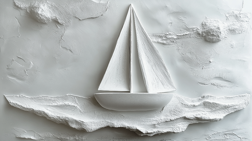 Прегледайте пълни подробностиФототапет платноходка | Платноходка в релеф на бял текстуриран фон