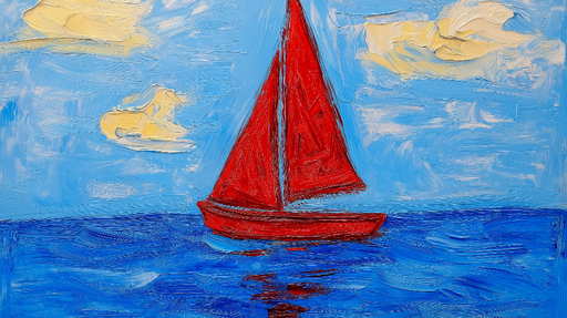 WonderMuralТази ярка тапетна картина представя червена платноходка в открито море, подчертана от синьо небе, обсипано с меки облаци. Със своята ярка цветова п...