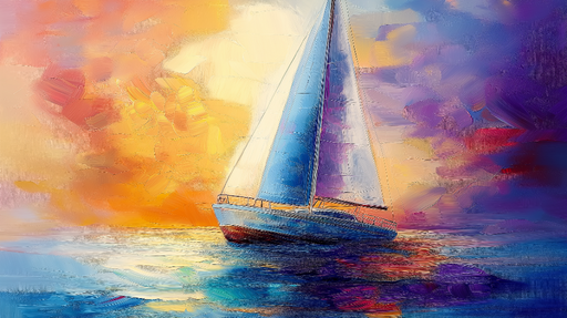 Прегледайте пълни подробностиФототапет платноходка | Цветна платноходка на абстрактен фон