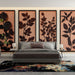 Тапет с цветен имитационен табло | Розови и листни модели с релеф върху теракотен фон
