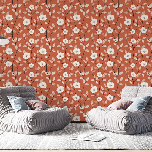 WonderMuralНашата красива Tapete разполага с узор от деликатни бели цветя, поставени върху топъл теракотен фон. Природните нюанси на цветята, с намеци на оран...