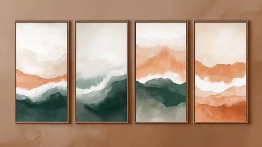 Прегледайте пълни подробностиТапет за стена имитация на картини | Меки теракотови и изумрудено зелени вълнения