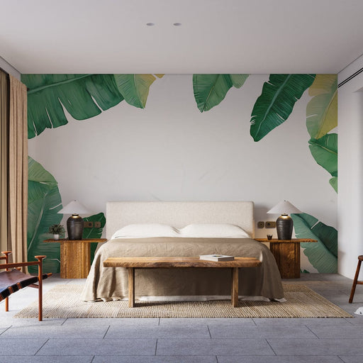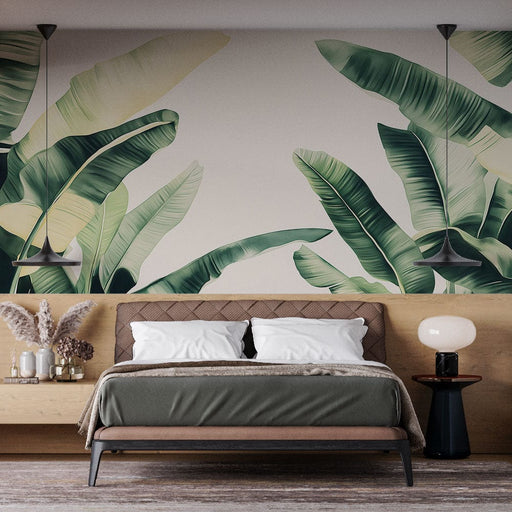 Прегледайте пълни подробностиМурален тапет banana leaf | Големи зелени листа на светъл фон