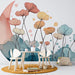 Открийте нашата елегантна тапета с мурал, представяща деликатни цветя, илюстрирани с акварел, красиво издигащи се срещу лунна форма. Оттенъците на розово, оранжево и синьо, хармонизирани с докосвания от меки нюанси, създават спокойна и магическа атмосфера във вашия интериор.