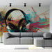 Нашата тапетообразна тапета разполага с завладяващ модел на слушалки, заобиколени от ярки петна от цвят, създавайки динамична и художествена атмосфера. Взривове на розово, тюркоаз и оранжево контрастират с по-неутрален заден план, добавяйки допир на модерност към вашия простор.