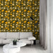 Тапетът подчертава ярък цветен модел, комбинирайки жълти и бели цветя на зелен фон, предлагайки ретро и топъл допир. Различните видове цветя и листа създават богата и динамична композиция, идеална за създаване на весела и уютна атмосфера във всяка стая.