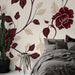 Червено флорално фототапет | Червен цветен мотив на бежов фон