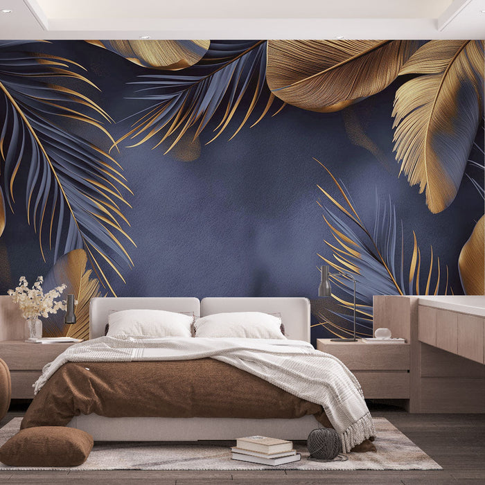 Съвет от WonderMural.com: Завършете вашата декорация, като добавите златни аксесоари или зелени растения, така подчертавайки тропическата и луксозна тема на вашия интериор.