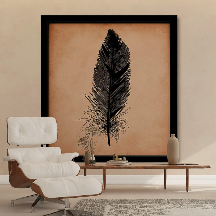 Открийте нашата Тапет с мотив на черно перо, елегантно поставено върху мек и топъл фон. Този художествен дизайн предизвиква лекота и изисканост, идеален за добавяне на допир на креативност към вашите пространства.