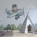 Тропическите листа в долната част добавят допир на зеленина и свежест, превръщайки стената в реално мечтано панорама. Този стимулиращ визуал ще зарадва младите амбициозни пилоти и ще насърчи тяхната въображение да изследват света.