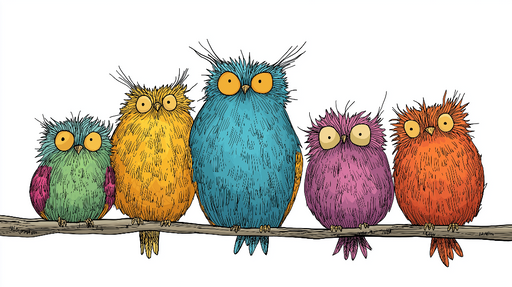 View full detailsMural Wallpaper colorful owls | Charming colorful owls on a branch