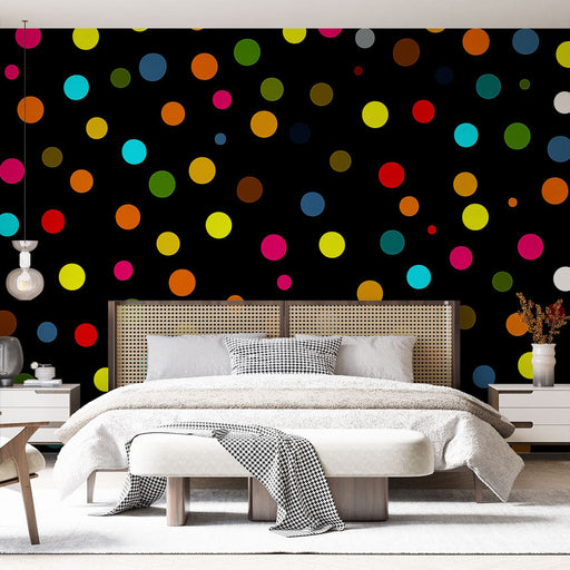 View full detailsMural Wallpaper colorful polka dots | Playful and dynamic design on a black background