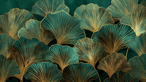 WonderMuralThis wallpaper features an elegant pattern of stylized gingko leaves, delicately drawn with golden hues on a deep green background. The combination...