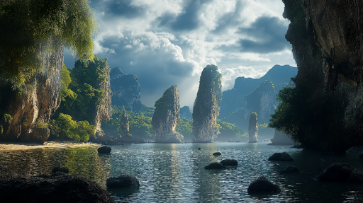 WonderMuralThis mural wallpaper evokes a breathtaking natural landscape, with rocks sculpted by time proudly standing above a calm sea. The lush vegetation su...