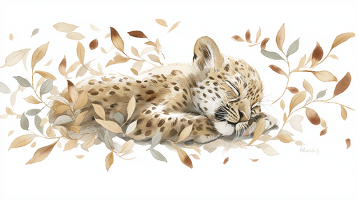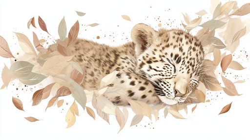 View full detailsMural Wallpaper sleepy leopard | Sweet illustration of a peacefully lying leopard among leaves