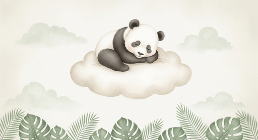 WonderMuralThis charming mural wallpaper features an adorable sleeping panda cuddled up on a fluffy cloud, creating a soft and dreamy atmosphere. The delicate...