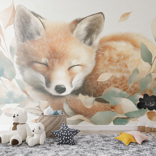 View full detailsMural Wallpaper sleepy fox | A peaceful fox surrounded by delicate leaves