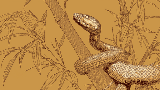 WonderMuralThis elegant Mural Wallpaper features a vintage design of a snake coiled around a bamboo stalk, on a warm and inviting background. The clean lines ...