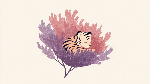 WonderMuralOur superb mural wallpaper features an adorable sleeping tiger nestled in the midst of delicate shades of pink and purple foliage. The stylized ill...