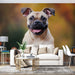 Add a touch of cheerfulness to your interior with our joyful-dog-mural-wallpaper featuring an adorable dog running amidst autumn leaves. This vibrant and warm design will give a welcoming and lively atmosphere to any room.