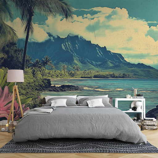 WonderMuralThis mural wallpaper depicts a tropical beach with crystal-clear waters and majestic mountains in the background, creating a paradisiacal ambiance....