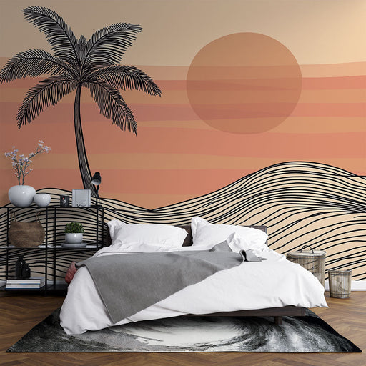 Marine landscapes naturally instill a sense of space and freedom. From the rustling of palm trees to the reflections of the sun on the water, our desert mural wallpaper helps create a soothing ambiance with its endless dunes merging into the ocean. Every detail contributes to a calming atmosphere. We have selected designs that adapt to all styles, from minimalist illustrations to spectacular panoramic views.