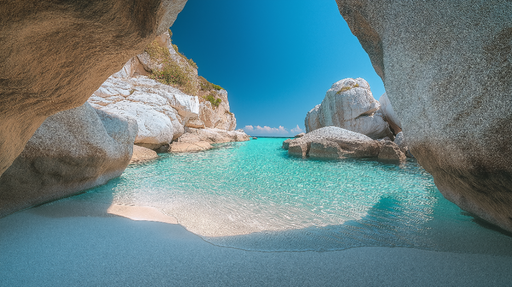SpectrumThis wallpaper captures a breathtaking view of a Mediterranean cove through an old stone arch, adorned with blooming bougainvillea. The turquoise s...