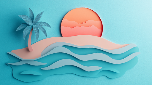 WonderMuralThis mural wallpaper features a stylized beach pattern with a charming palm tree and a cut-paper sunset, bringing a tropical vibe to your interior....