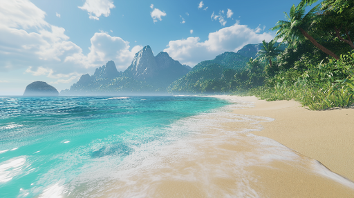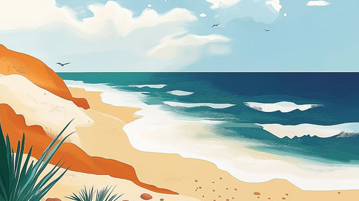 FluxGraphicThis wallpaper captures the essence of an idyllic beach with turquoise waves gently breaking on golden sand. The watercolor illustration gives a se...