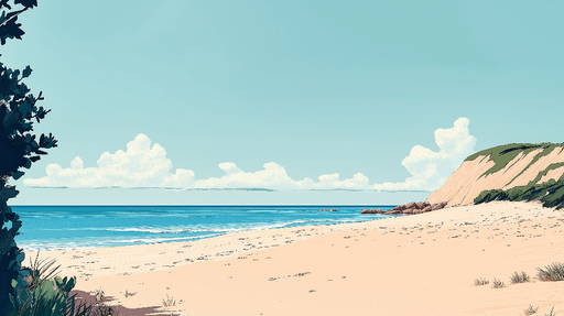 WonderMuralImmerse yourself in a soothing ambiance with our mural wallpaper illustrating a serene beach. The artistic representation shows white sand dunes an...