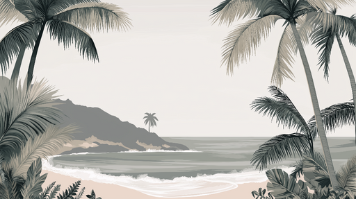 WonderMuralThis mural wallpaper evokes a peaceful ambiance thanks to its delicate pattern of palm trees in gray and beige tones, surrounding a tranquil beach ...
