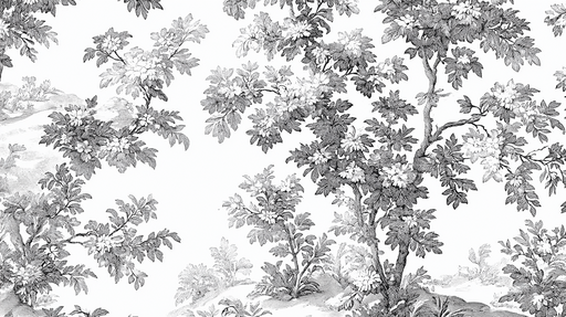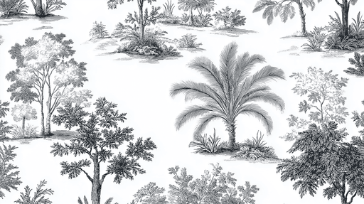 For perfect harmony, pair your botanical mural wallpaper with textiles of varied textures. Velvet, linen, and silk create material interplays that enrich your monochrome decor. Graphic plant motifs ideally complement touches of brass or copper to warm up the ensemble. Consider integrating live green plants that echo the wall patterns.