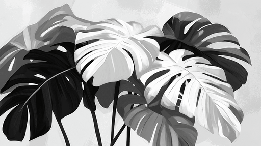 View full detailsMural Wallpaper black and white foliage | Monsteras with lighting