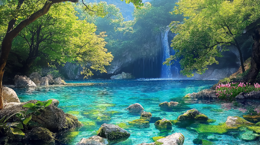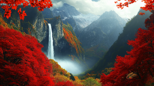 The contrast between the lively water and the deep shadows of the mountains evokes a sense of escape, ideal for those who wish to transform their interior into an inspiring sanctuary. This design integrates wonderfully into modern, minimalist, or natural spaces, bringing a touch of timeless elegance.