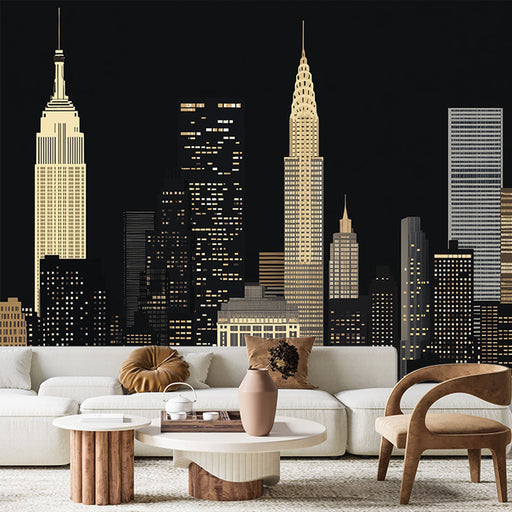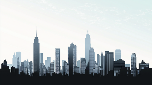 Discover our captivating mural wallpaper featuring an urban silhouette in black and white. This modern and minimalist design depicts the iconic city skyline, highlighting distinctive skyscrapers that create a dynamic and contemporary ambiance.
