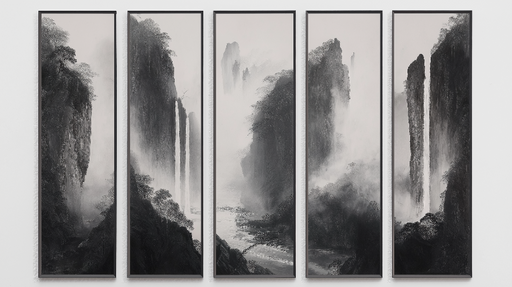 View full detailsMural Wallpaper abstract landscape | Mountains and waterfalls in black and white