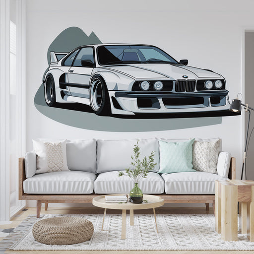 WonderMuralDiscover our sticker representing a sports car with the iconic design of the BMW brand. This visual, created with clean lines and an artistic style...