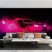 This unique mural wallpaper highlights a retro car drawn with pink neon lines, emerging from the colorful mist. The bold design evokes a futuristic and dynamic atmosphere, ideal for car enthusiasts and vintage style lovers.