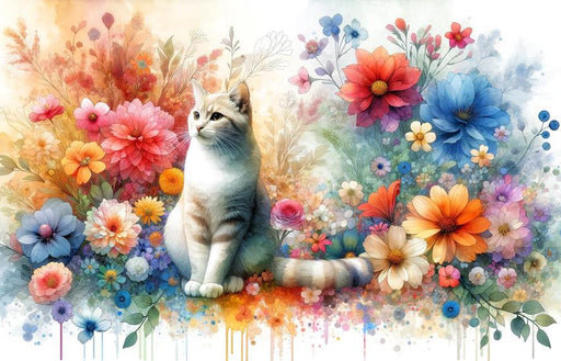 Aura ArtworksOur "Watercolor Field of Flowers Cat Wallpaper" is a work of art for your interior. The cat blends harmoniously with the vibrant colors of the wate...