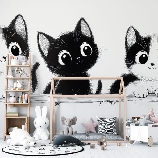 Art'loloDiscover our Mural Wallpaper cute kittens, ideal for creating a soft and welcoming atmosphere in any room. Illustrated in black and white, this des...